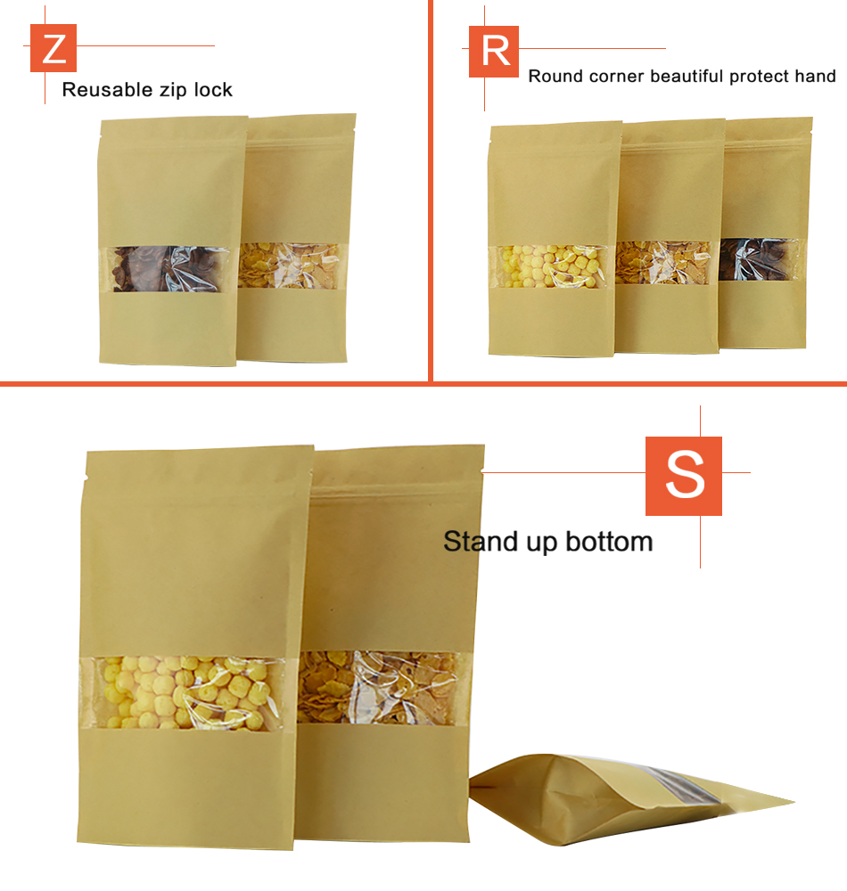 Bag Style:Thickened kraft paper long window self-sealing self-supporting bag