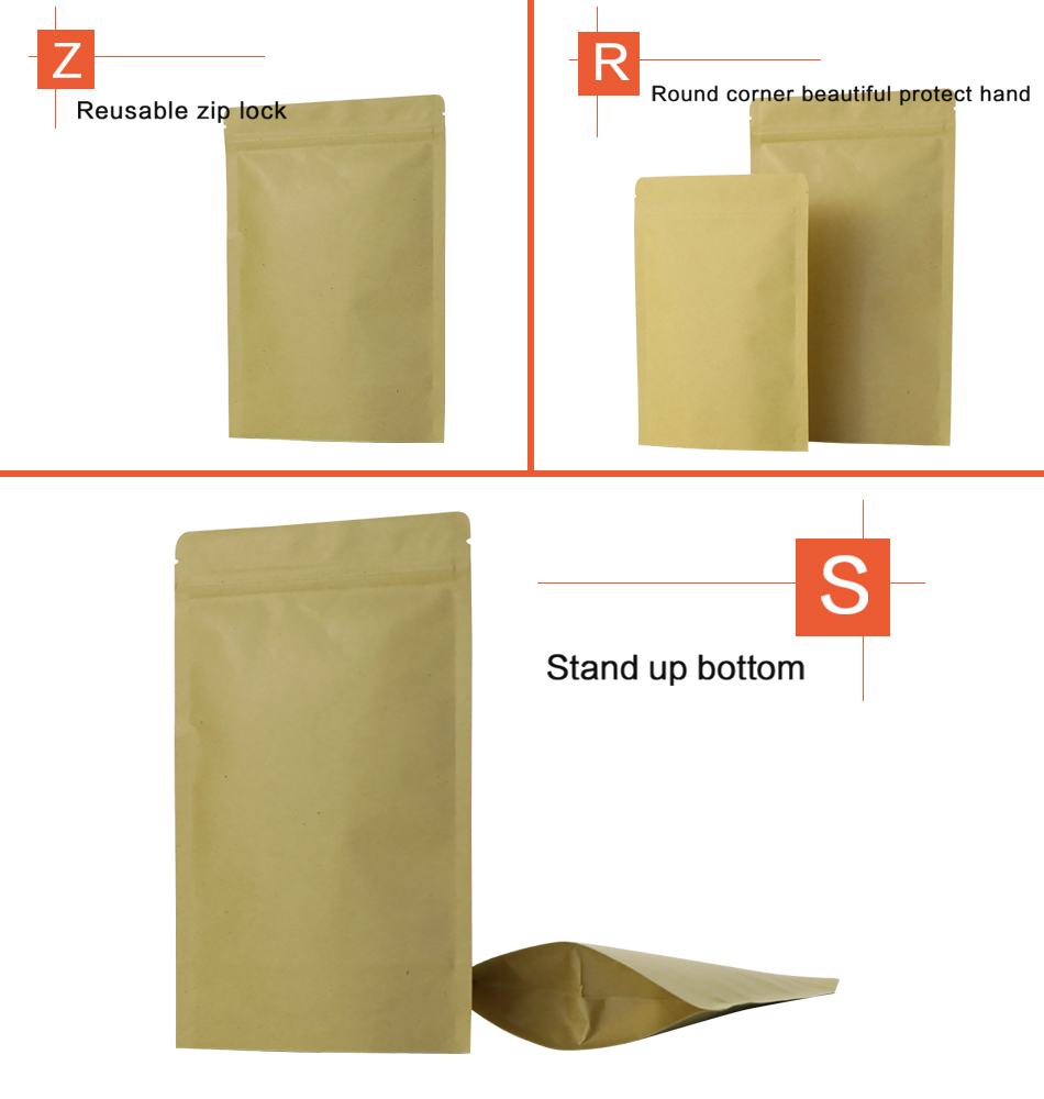Food-grade kraft paper zipper standing bag