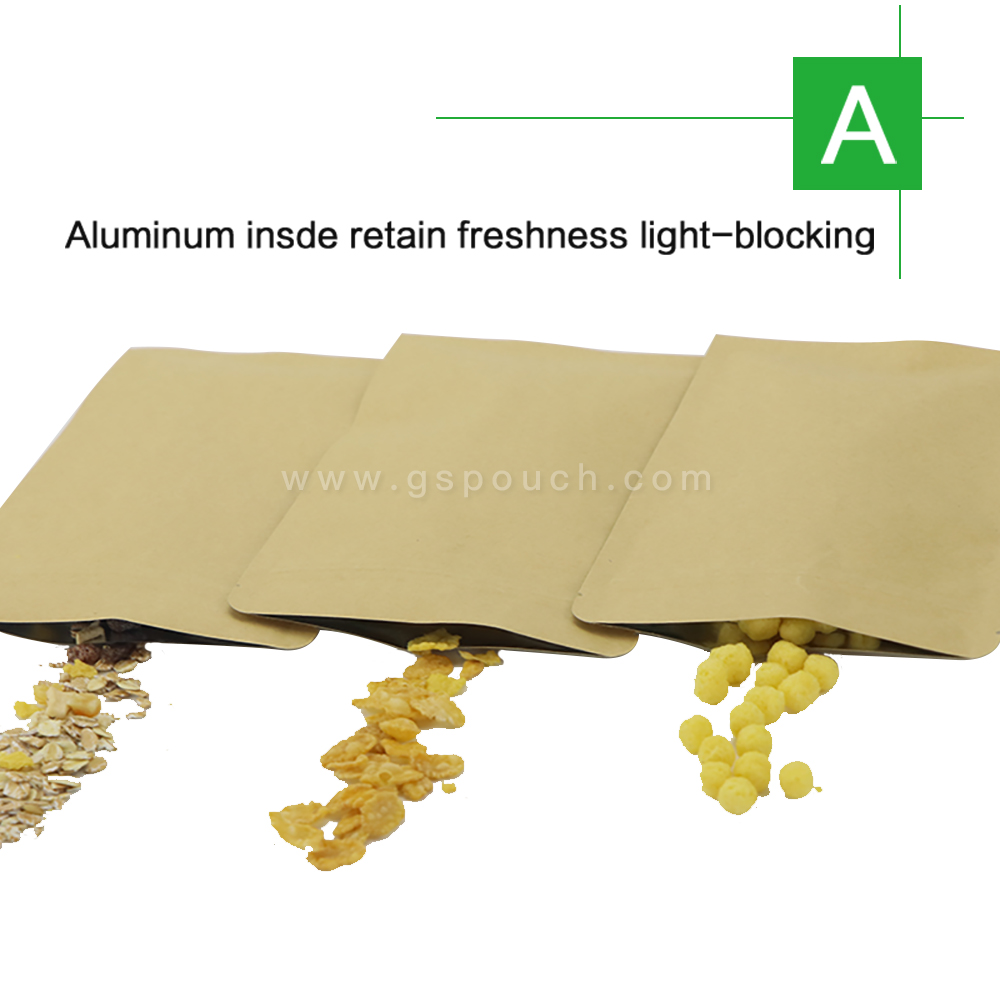 Bag Style:Food grade kraft paper flat bottom ziplock bag