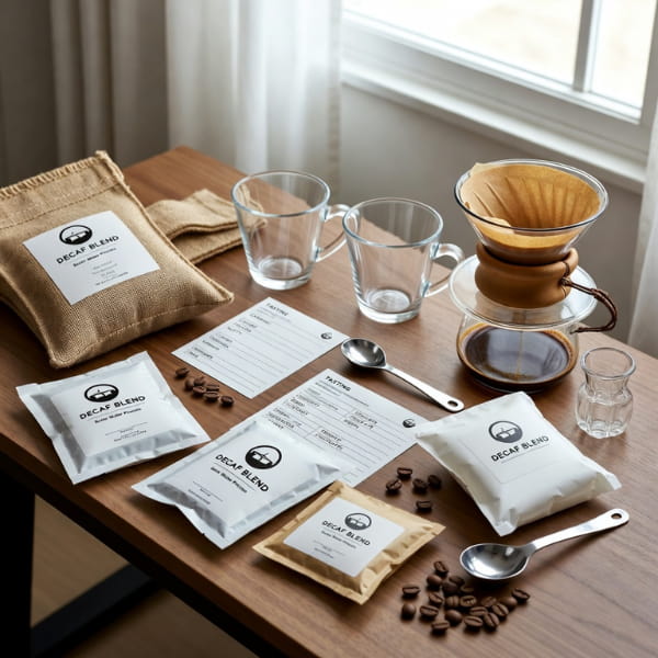 A decaf coffee tasting kit is a curated set of small-batch decaf coffee samples. Most kits feature coffees from three to five specialty roasters, selected to highlight variation rather than volume.